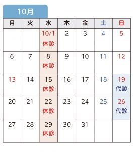 10月の代診医師予定(令和7年8月20日 改定)