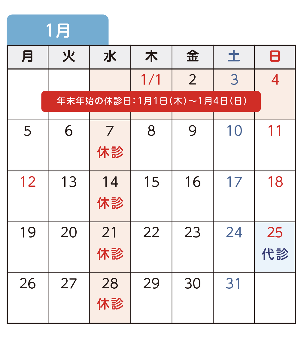 1月の代診医師予定