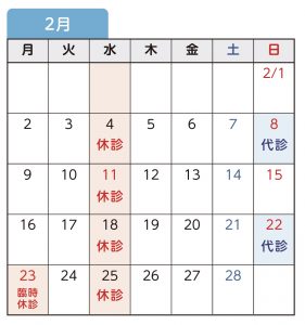 2月の代診医師予定(令和8年1月17日 改定)